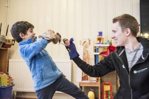 Norsk Folkehjelp driver flere asylmottak, i tillegg til arbeid som fremmer integrering og toleranse. Her er noen av våre medlemmer i vår ungdomsorganisasjon Solidaritetsungdom på besøk hos asylbarna ved Refstad transittmottak. Solidaritetsungdommen arrangerer leker og aktiviteter for asylbarna.